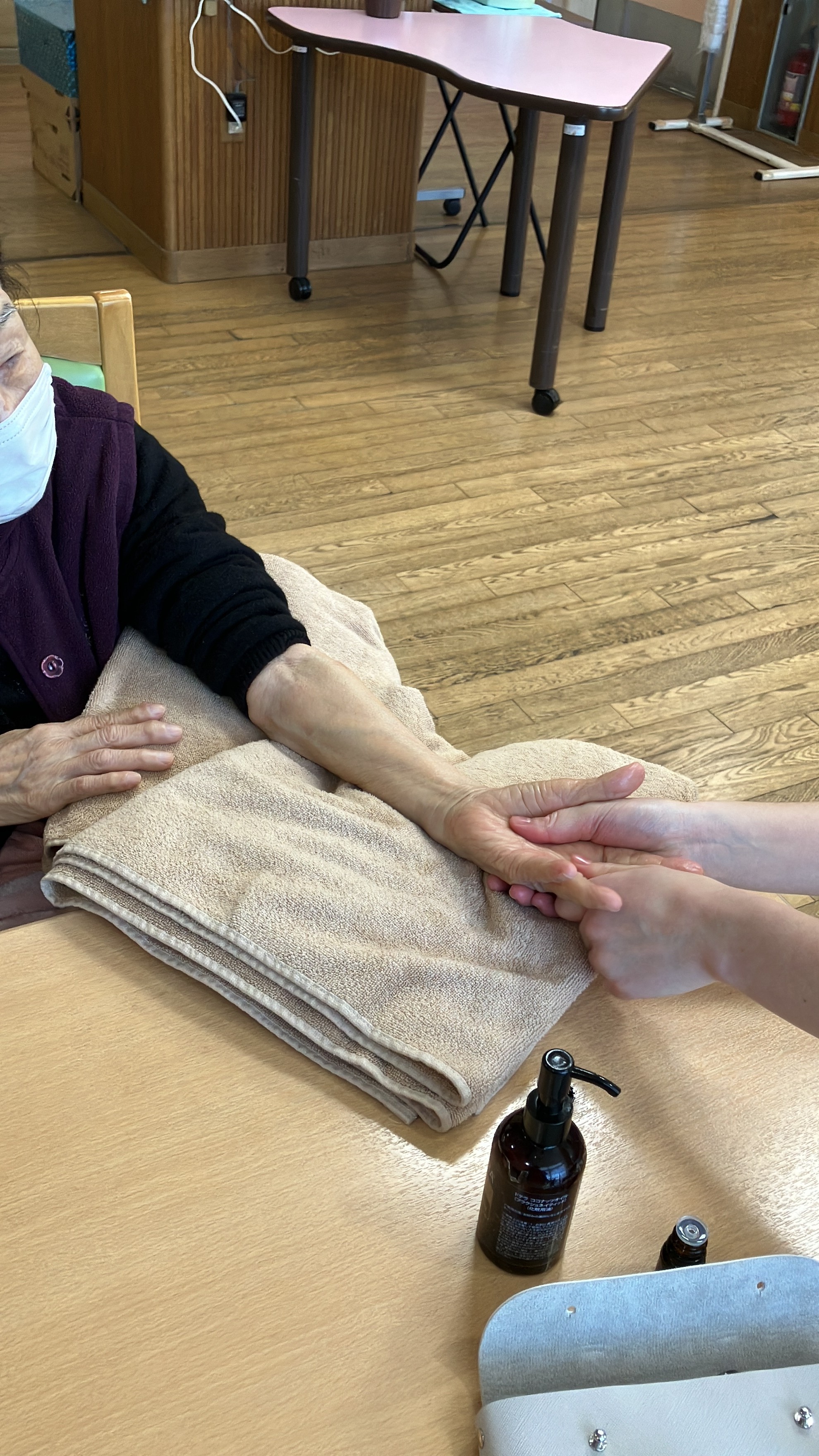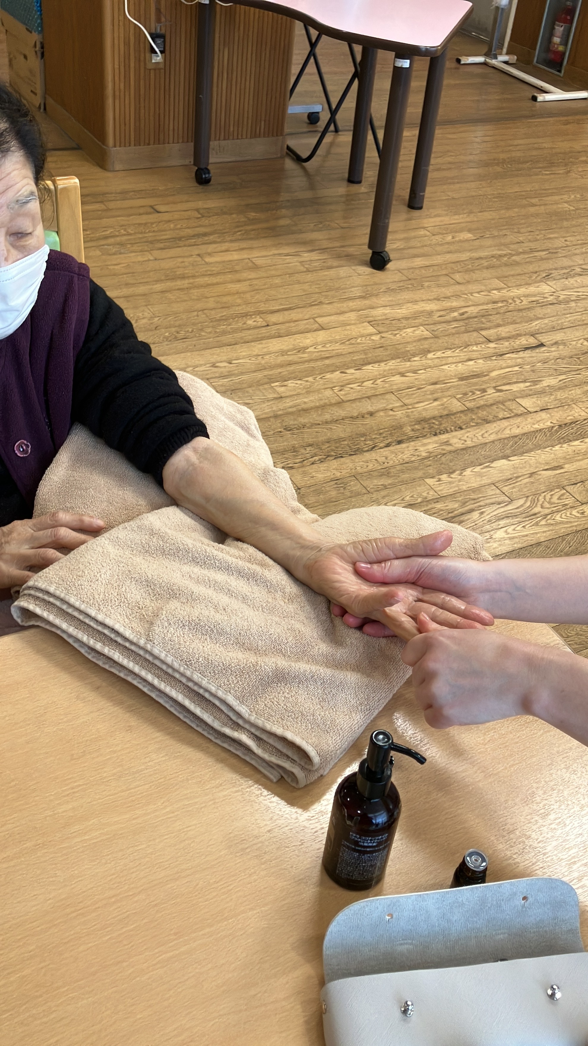 2025年12月21日(日) アロマ体験(特養・ショート) 先日ご厚意でアロマテラピーを体験させてもらいました。 最初はおっかなびっくりでしたが オイルの香りに癒され 施術に癒されました。 「とっても気持ち良い」と仰っておりました。 またお待ちしております。 記事一覧にもどる