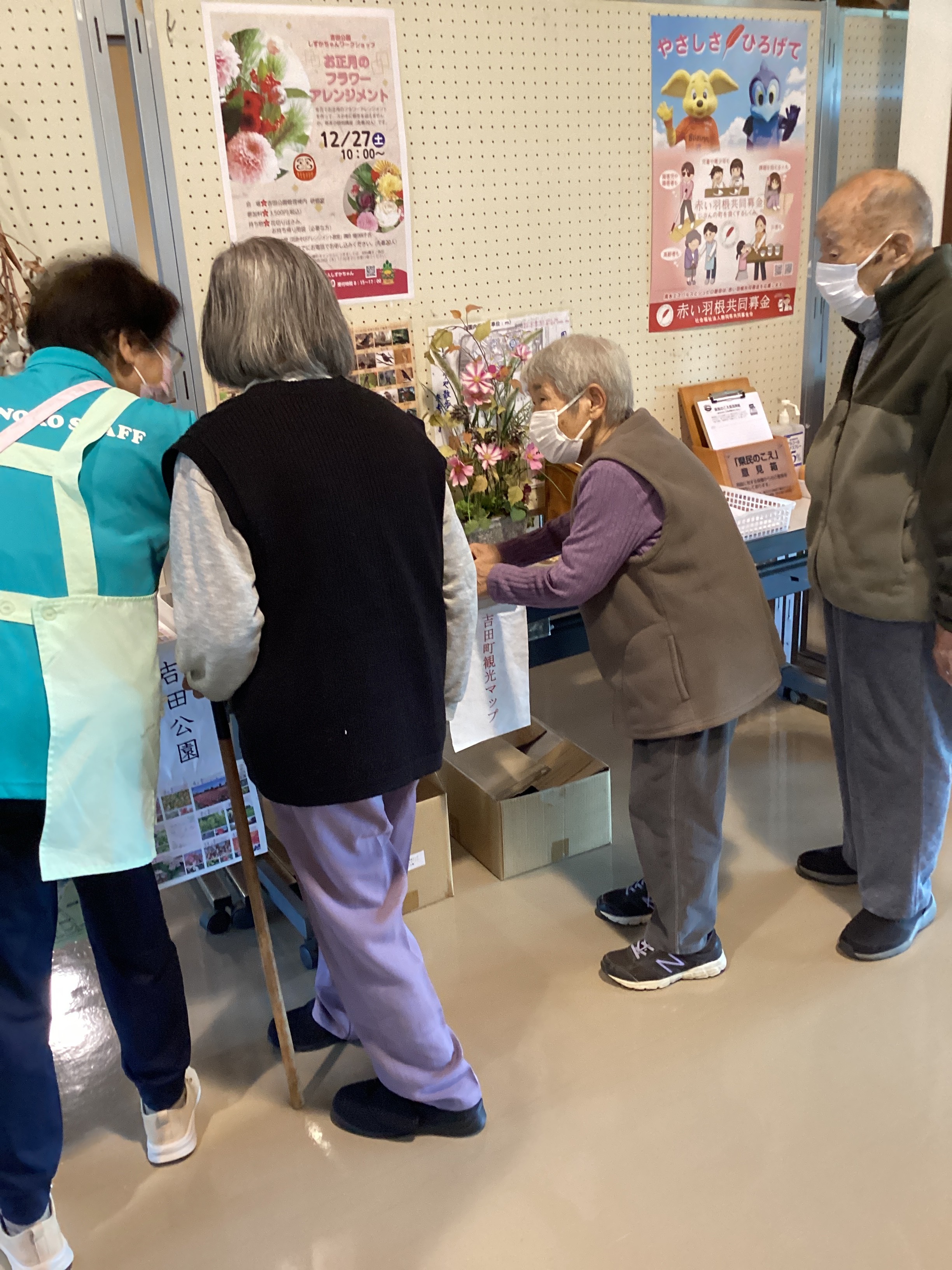 吉田公園の店内に入り展示してあるものをご覧になられています。