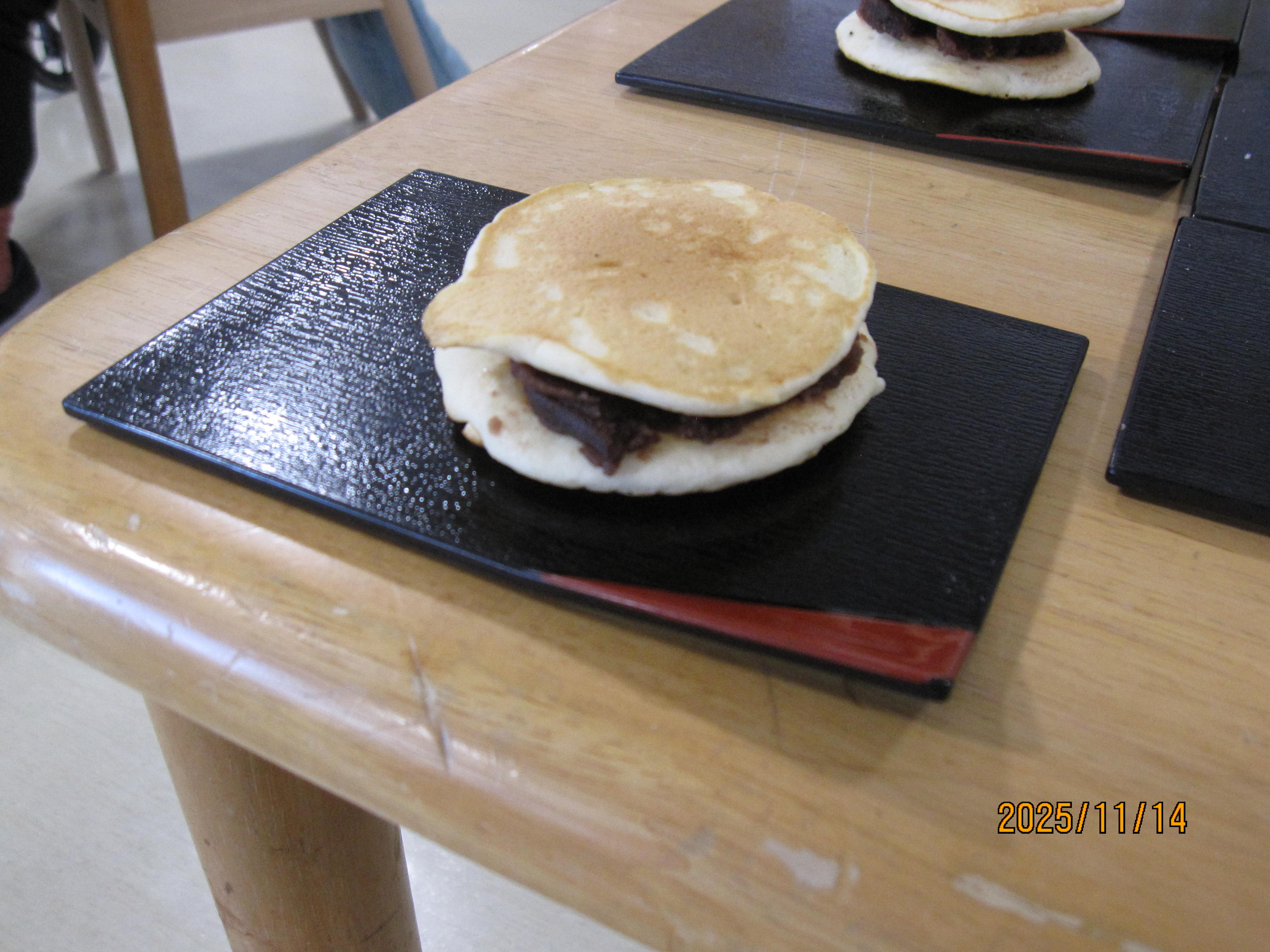 2025年12月03日(水) デイ 最近の様子~喫茶・おやつ作り~ 喫茶・おやつ作りを行いました 喫茶はいつも、おしゃべりをされたり、ゆったりまったり おやつ作りは、あんこたっぷり”どらやき”でした 記事一覧にもどる