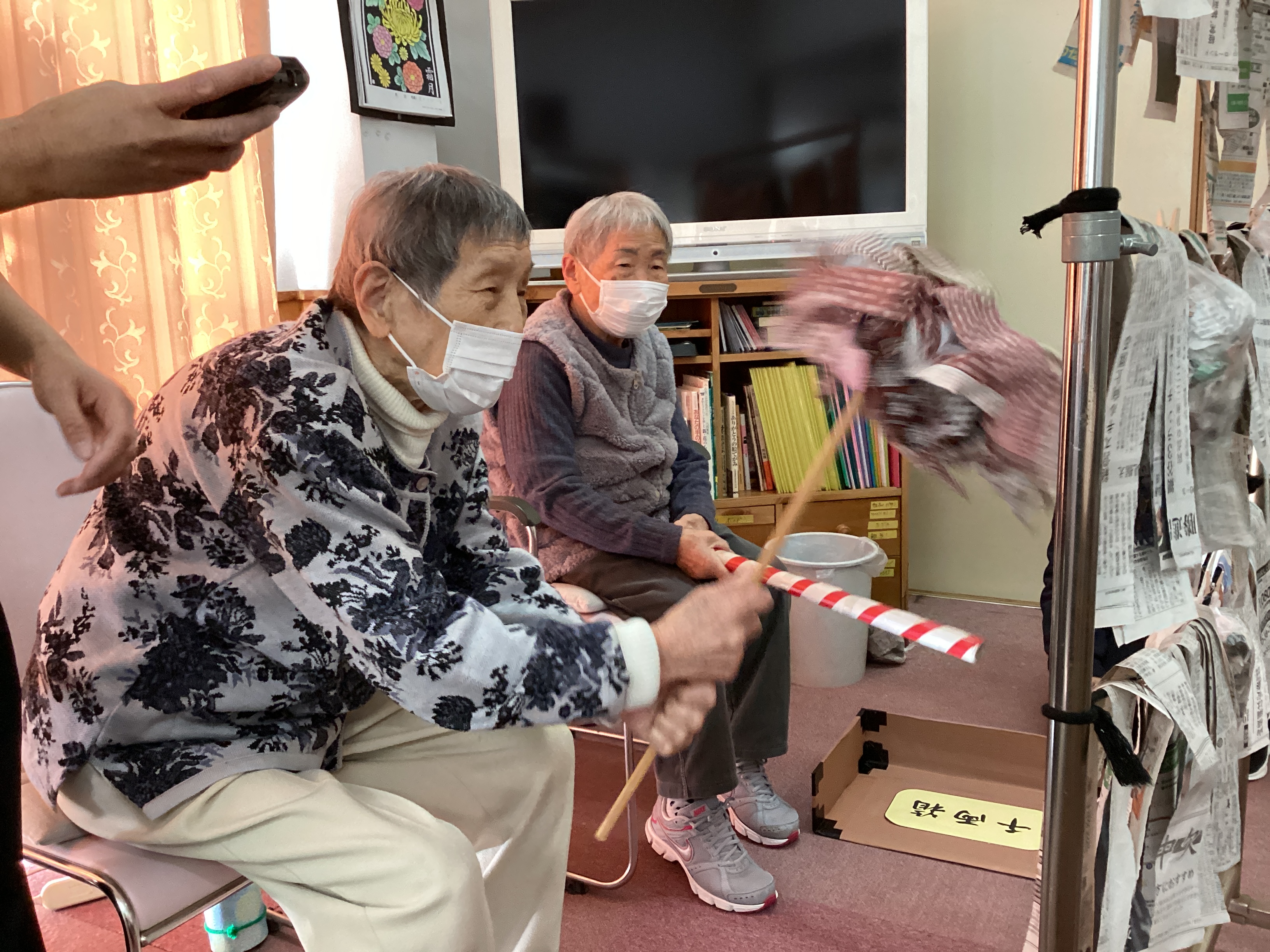 続いてはたきを使って、年末の恒例行事 大掃除ゲームをしました。