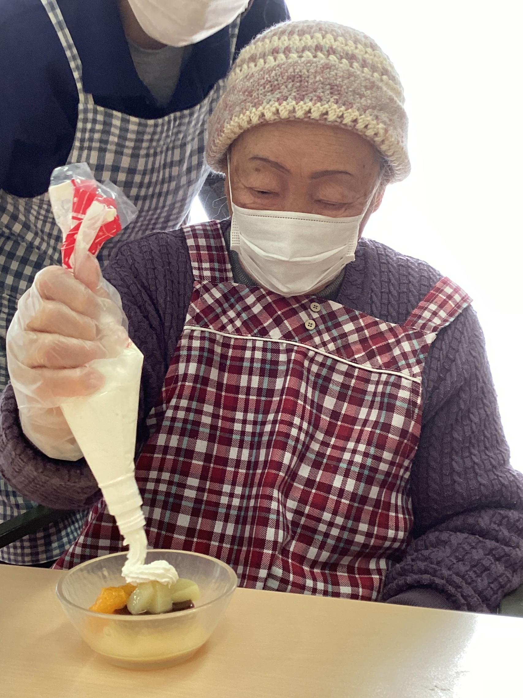 今月、ご利用者様と一緒に作るのはプリンアラモードです🍮