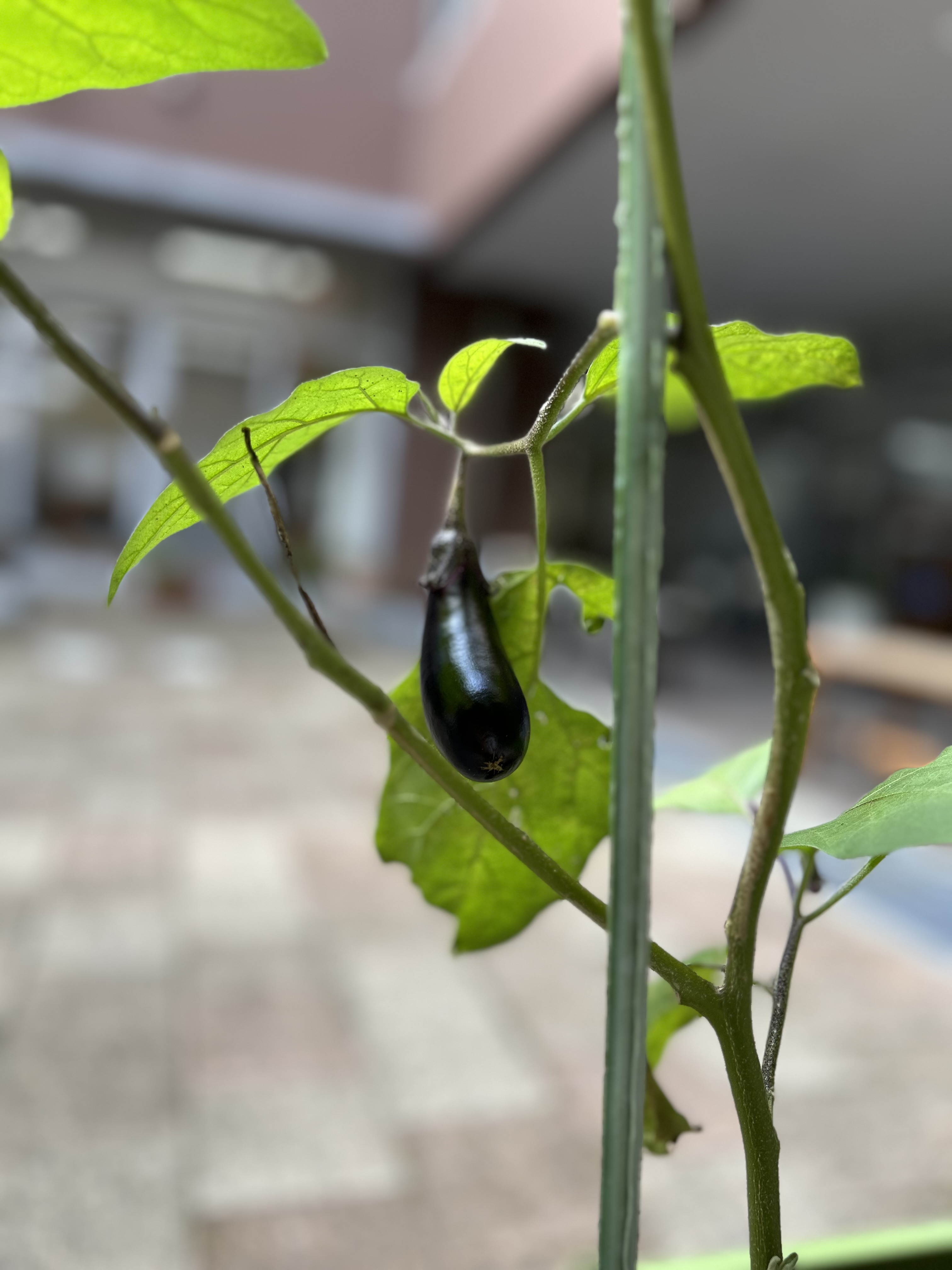 「かわいいナスができてるね!」 「きれいな形のナスだね!」