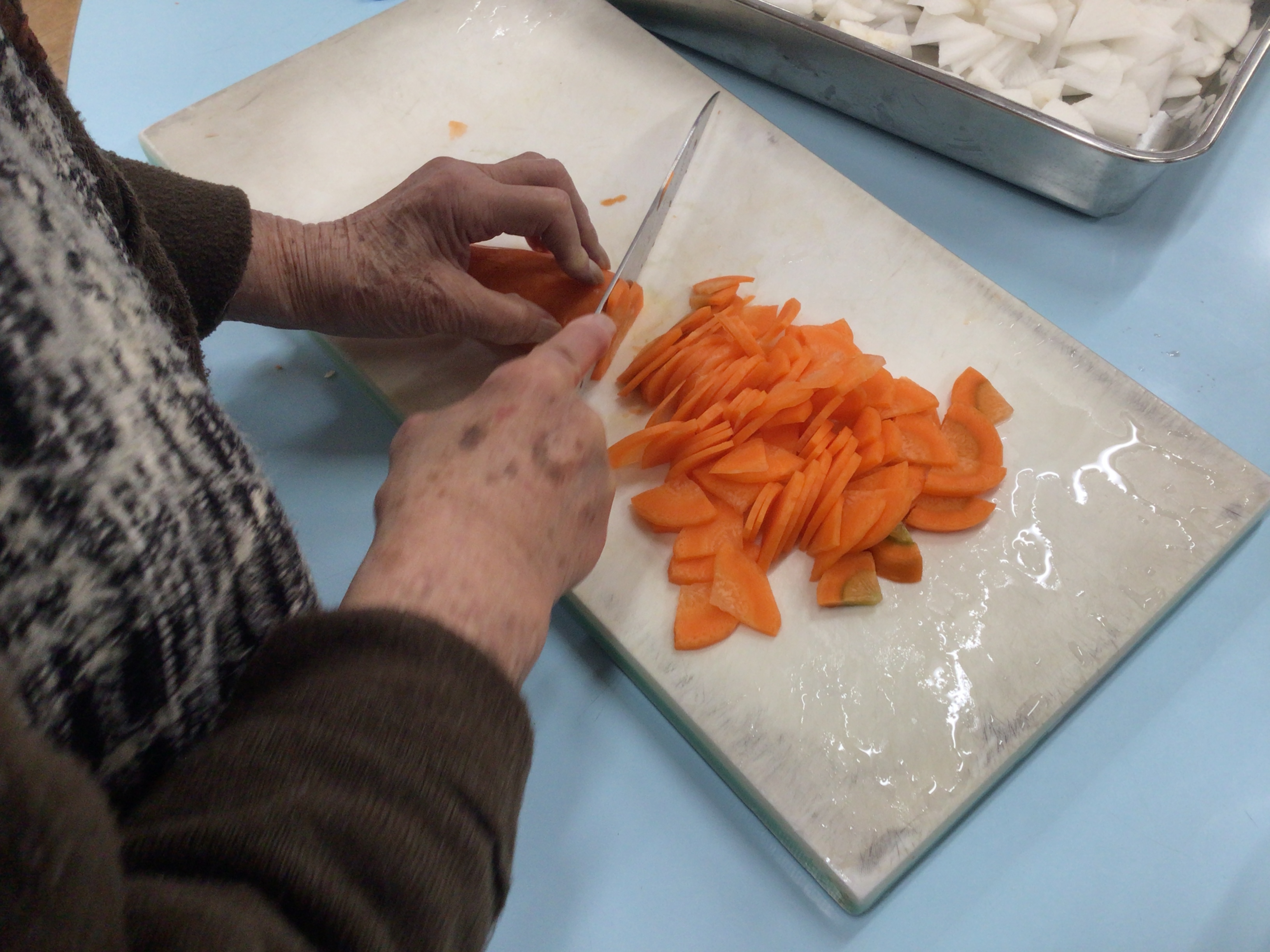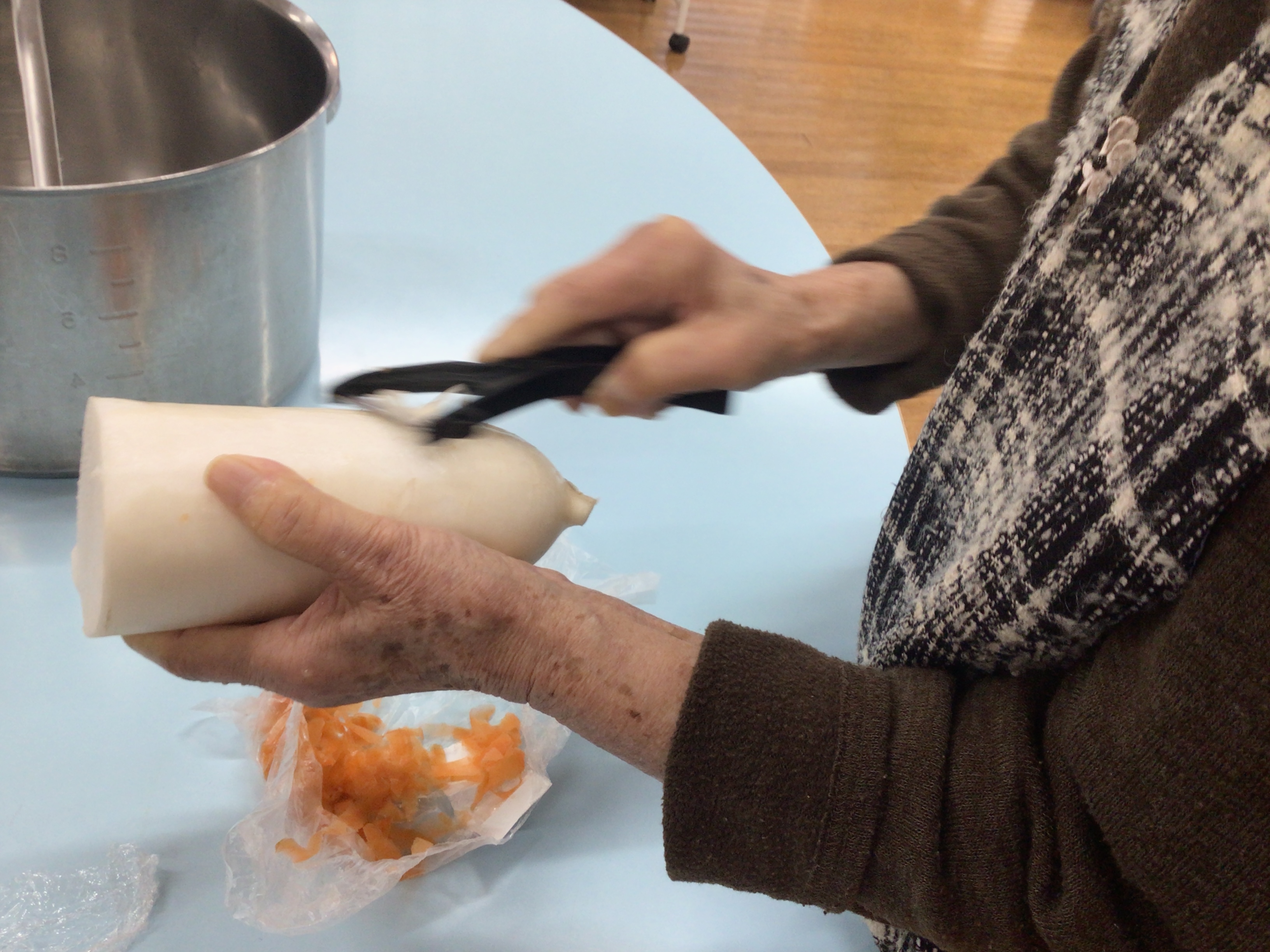 今月のクッキングは『サツマイモの土鍋ご飯』と『具だくさんのけんちん汁』に挑戦