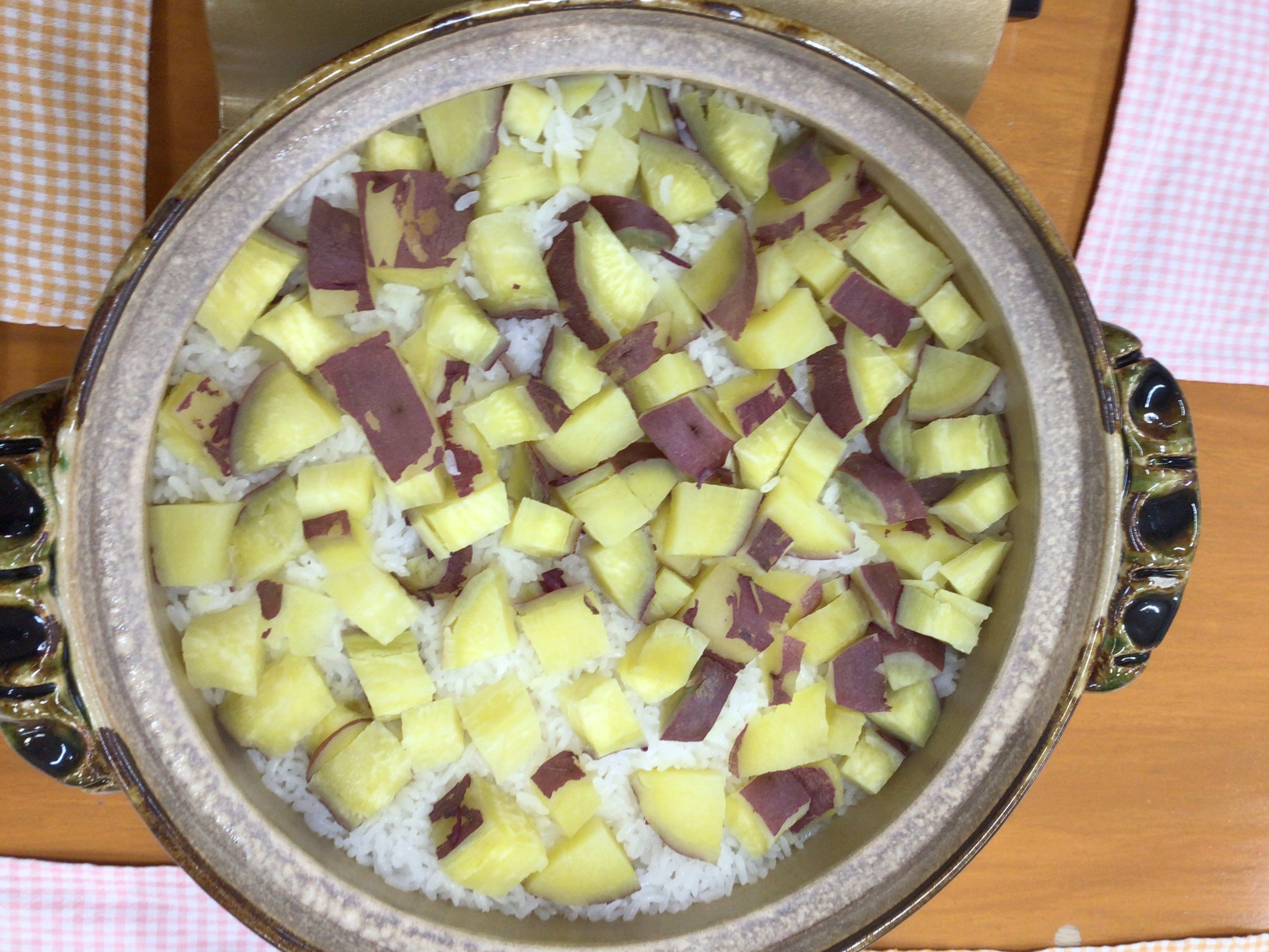 サツマイモのご飯はお芋の美味しさを引き立てるために、シンプルに酒と塩のみで炊きました🍚