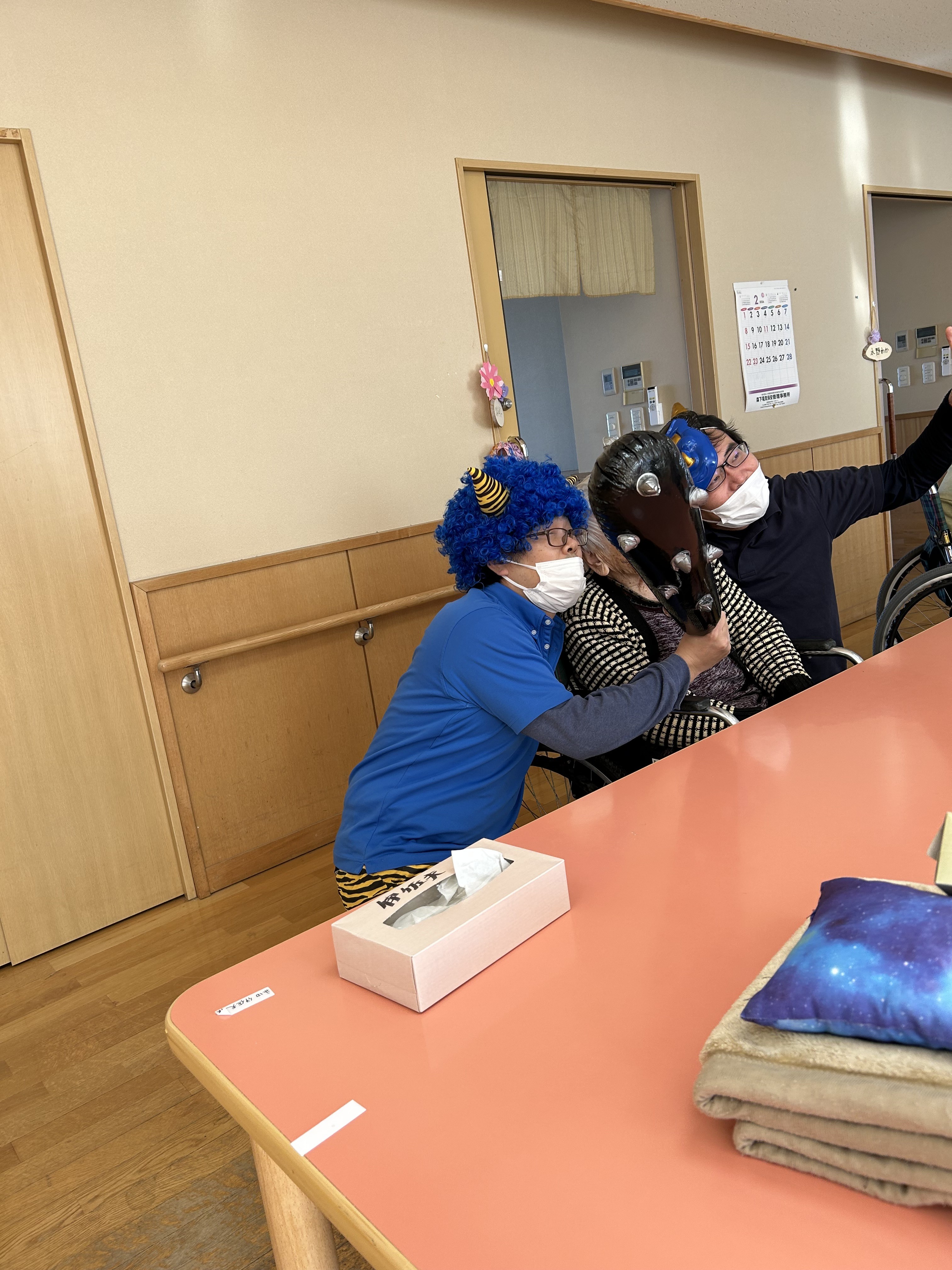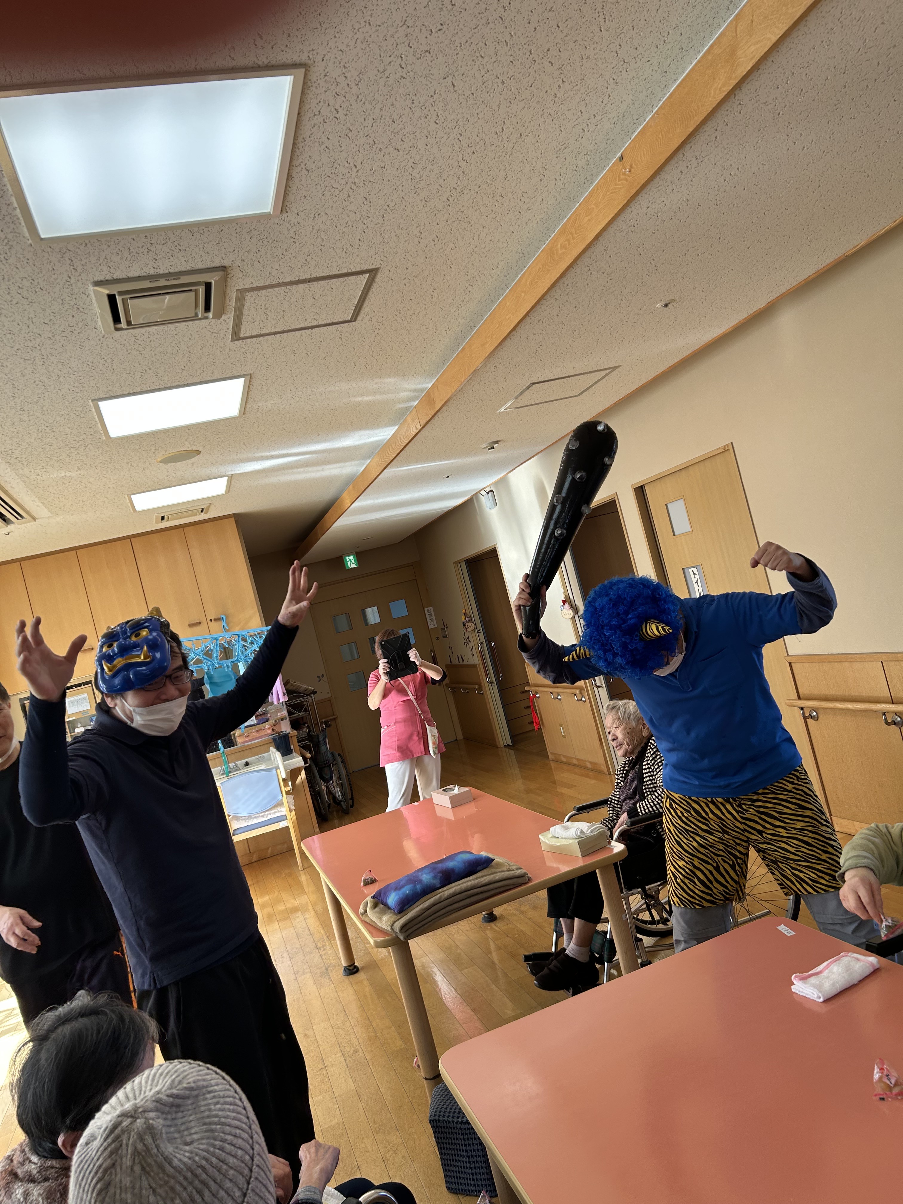 職員が鬼になり 豆を投げられて 記念撮影をしました