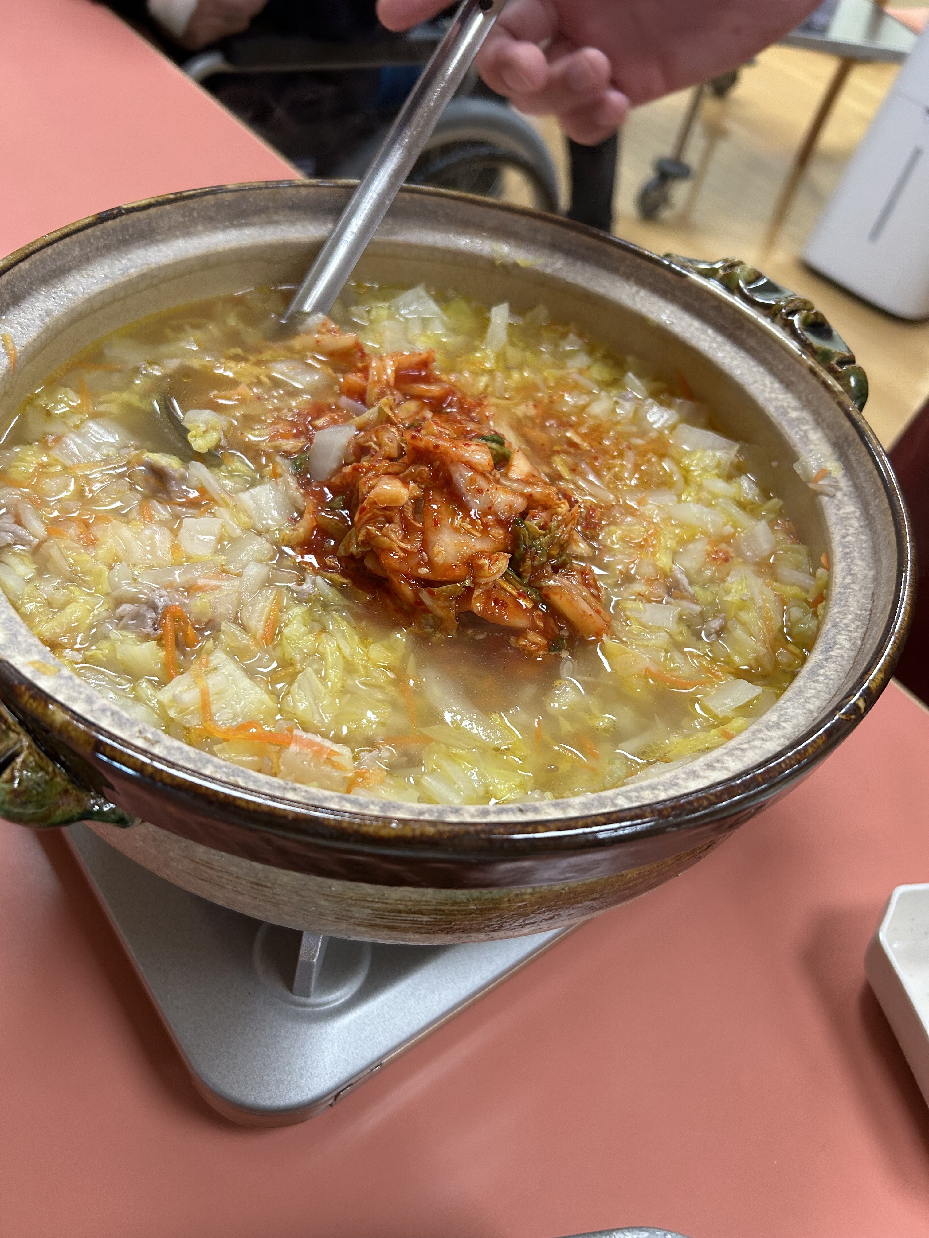キムチ鍋 塩ちゃんこ 各ユニットでお好みのお鍋をいただきました