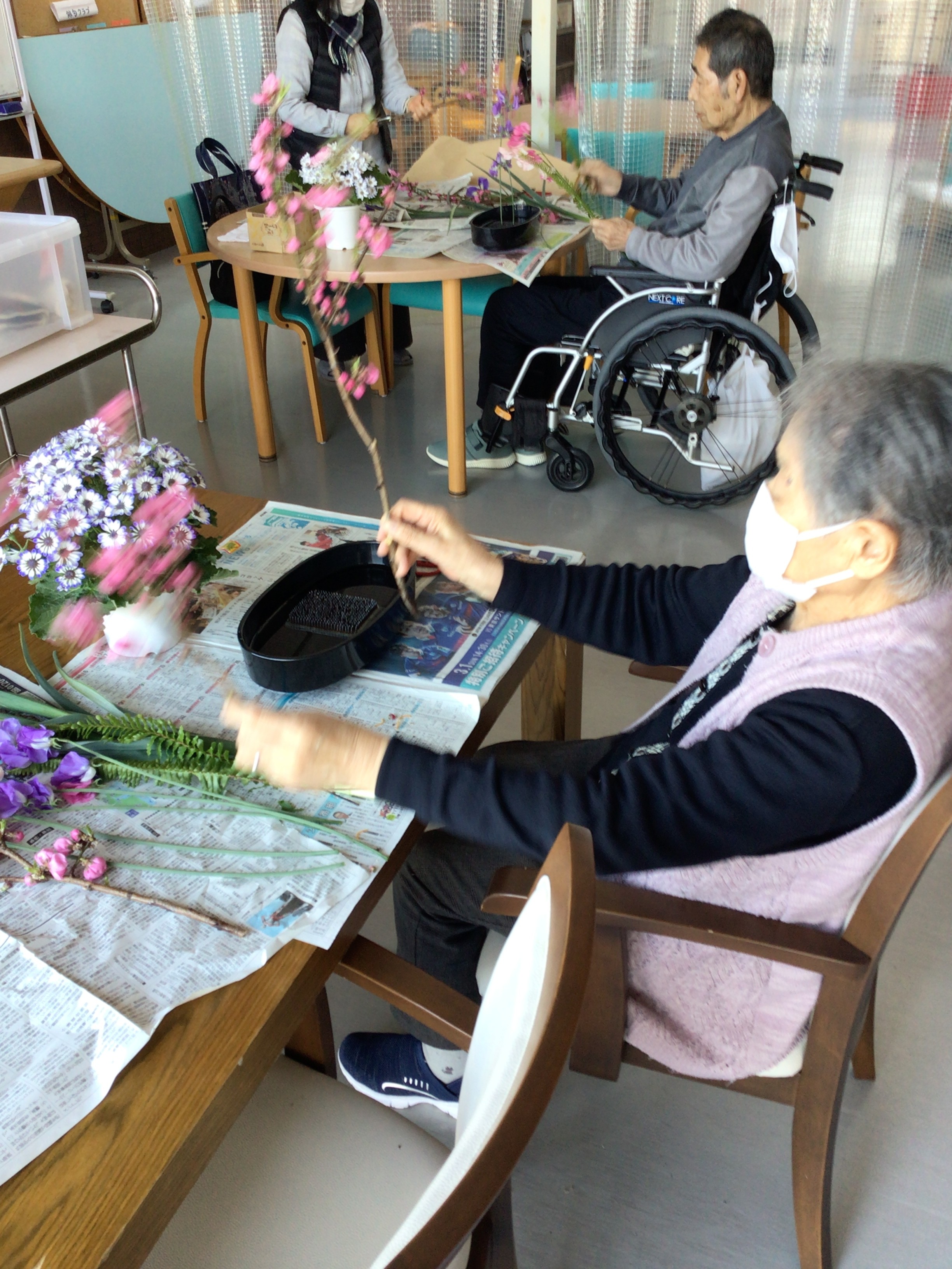 初めての生け花教室なんです、との事。この方も手つきが違いました。